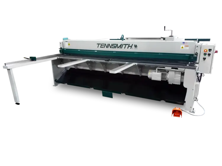 The LM series shears are standard with four-edge, high carbon, high chrome blades, independent, self-leveling hold down feet with noprene inserts, single continuous and jog stroke cycles, motor reverse switch, precision-macines table with hand well, dual inch/metric inlaid bed scales and non-metallic gibs.