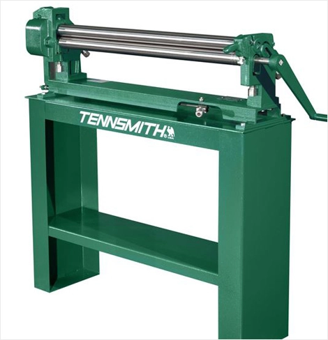 Tennsmith's slip rolls combine precision-turned ground and polished high carbon steel rolls with heavy-duty, cast iron end frames and a welded steel base to make an accurate and durable forming tool. Convenient operating features include large roll adjusting screws, scales for speeding repeat set-up, and a front-mounted handle to lift the upper roll for material removal. Wire grooves are standard.