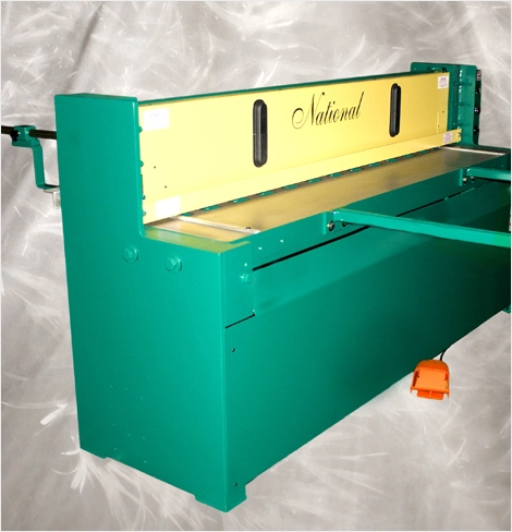 All USA made rugged welded construction. Inch bed scales, accurate table side gauges... Hold Down/ Finger guard with non-marring urethane and positive spring actuation. High carbon high chrome long life tool steel blades. Upper and lower blades are interchangeable. Non- metallic gibs, maintenance free self-lubricating bearings. Continuous cycle, single cycle and job for different needs. Fully guarded safety foot switch, low power consumption with quite operation.