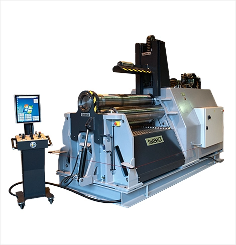For simple operation, the 4-roll machines can be optionally fitted with the newly developed, highly intuitive "Seven" CNC control. This advanced operating environment simplifies all rolling operations from the most basic simple cylinders to highly complex shapes such as ellipses and even specialized products with variable radii. Now these traditionally difficult shapes can be produced quickly and effortlessly. Equipped with a large, easy to use touch screen interface the "Seven" CNC control will make setup fast and easy and thereby ultimately reduce production times. The control is also network-compatible to make off-line programming and remote diagnostics a simple and easy process.